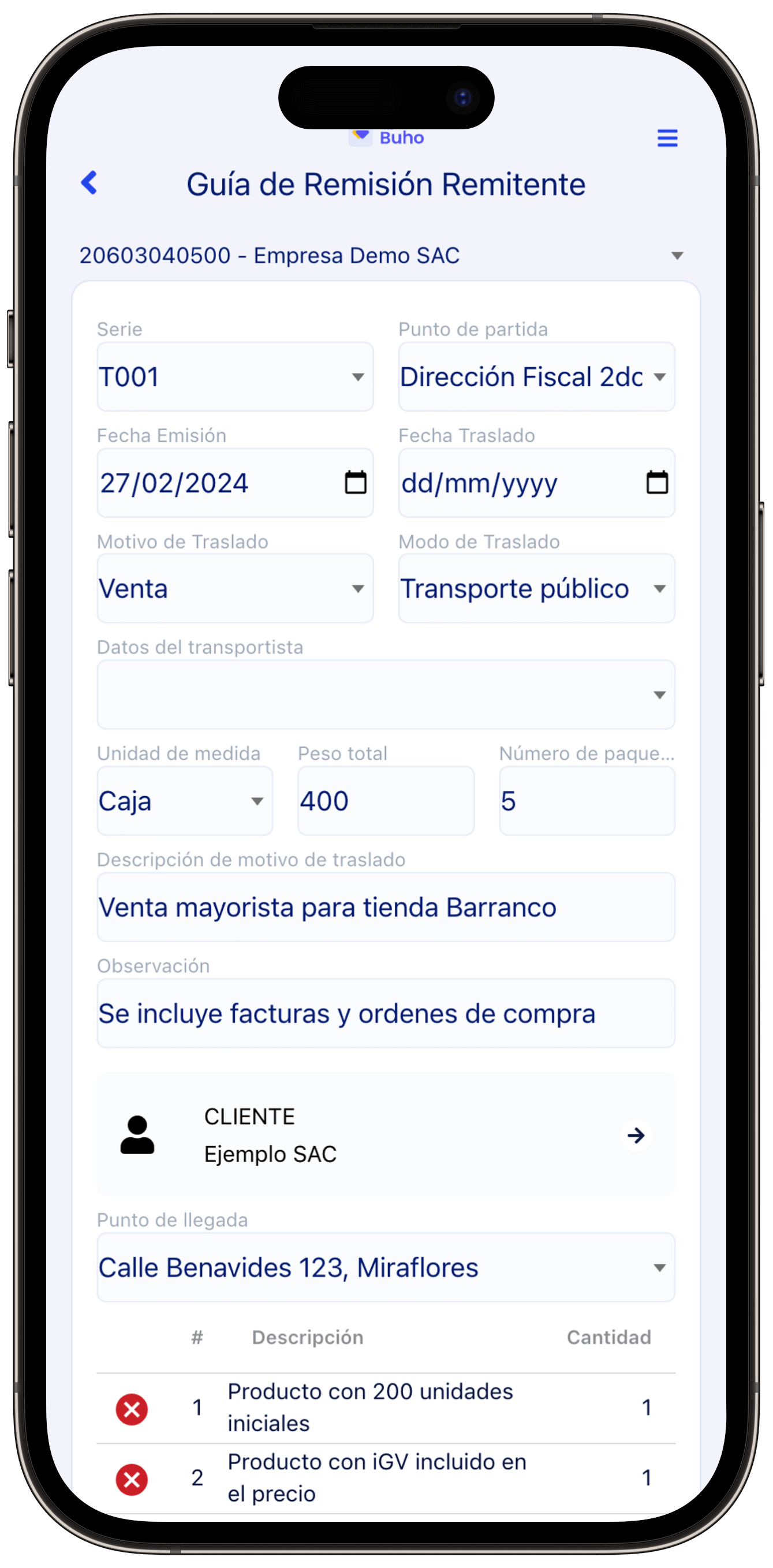 Genera fácil y rápidamente guías de remisión para mover tu mercadería. También usa tu impresora Bluetooth para imprimir tus guías.